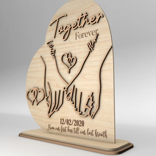 Celebrate the eternal bond between you and your partner with this Personalized Couple Hands Together Forever Stand Decor. Crafted from high-quality wood and measuring 20cm, this beautiful sculpture features two hands intertwined, symbolizing love, unity, and commitment. Perfect for weddings, anniversaries, or as a romantic gesture, it can be custom engraved with names, special dates, or meaningful messages.